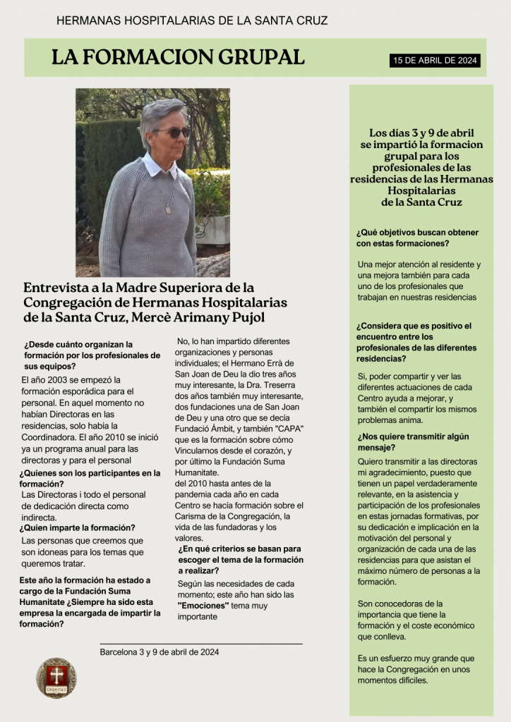 Entrevista a la Madre Mercè para que nos explique la trayectoria y objetivos de organizar formaciones en grupo entre todas las residencias de la Congregación.